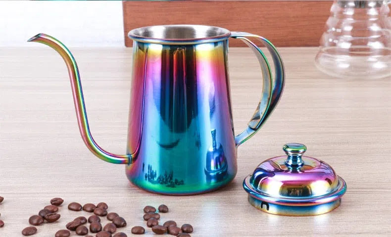 Eleve a qualidade do seu café com o Bule com Bico Fino em Aço Inox - Coleção Rainbow. Adquira o seu agora e desfrute de uma experiência única em cada xícara!