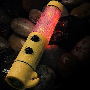 - ✅ 5 em 1: lanterna LED, luzes de sinalização vermelhas, faca para cinto de segurança, martelo de segurança e imã poderoso;