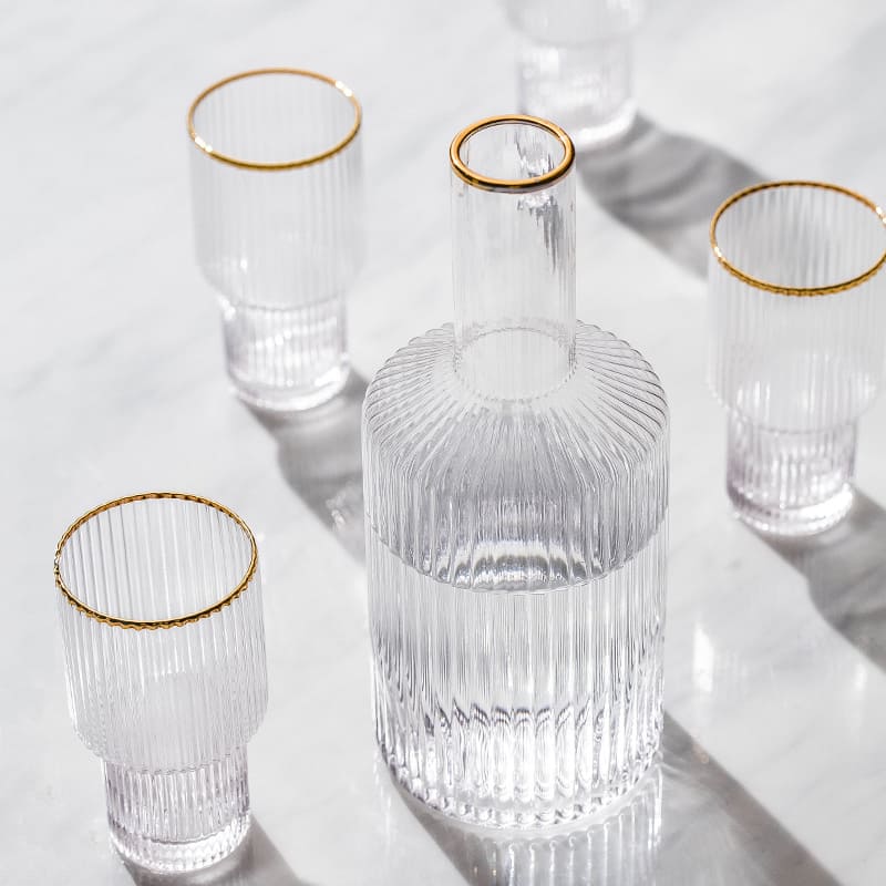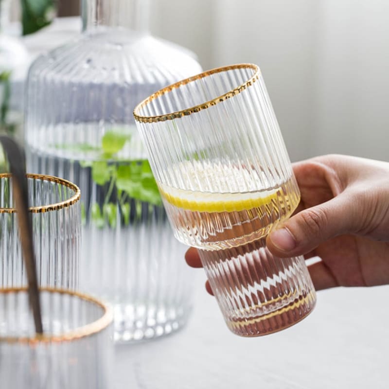 Com um lindo design em listras e acabamento em dourado, este conjunto não só é resistente a temperaturas quentes e frias, mas também adiciona um toque de elegância à sua mesa.