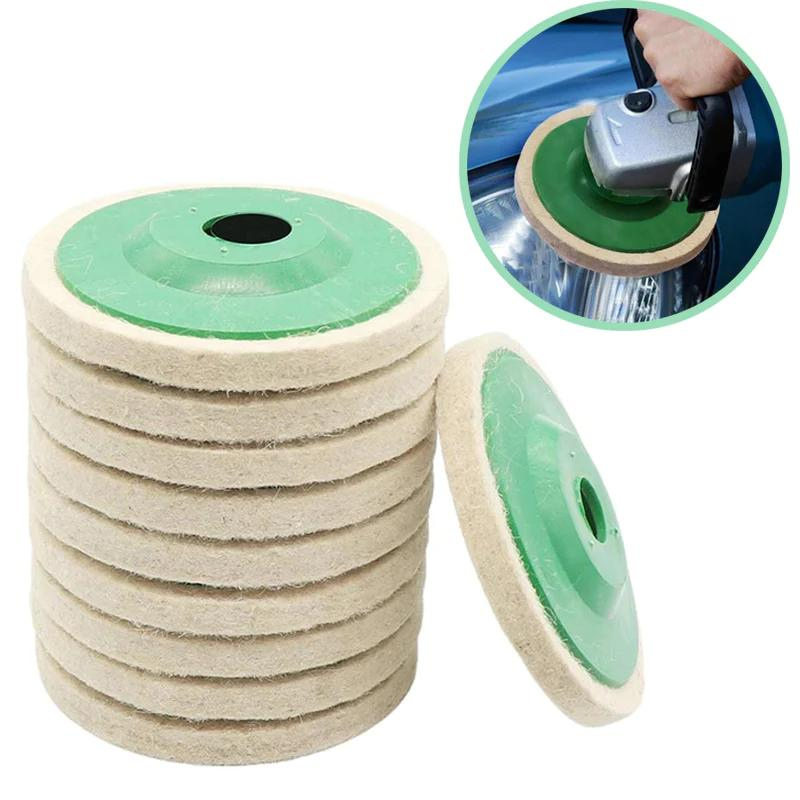 - Opção 2: 10x Discos de Polimento em Feltro de Lã + 1x Barra Polimento