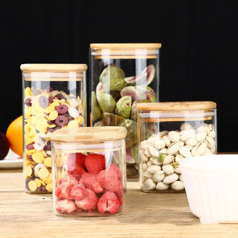 Organização e Elegância: Pote Hermético de Vidro com Tampa em Madeira