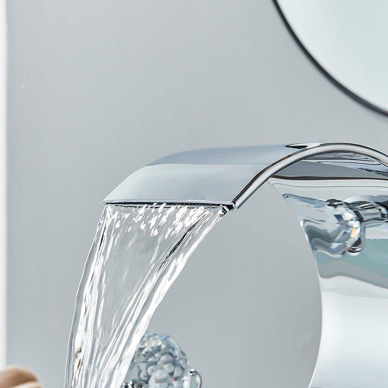 Design Funcional com Alças Duplas - O design elegante e funcional apresenta alças duplas que oferecem controle preciso sobre a temperatura e o fluxo de água, garantindo praticidade e conforto em cada uso.