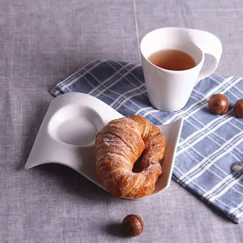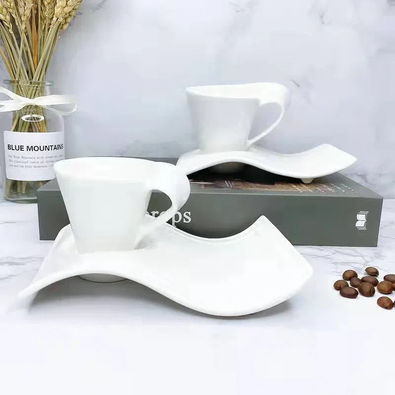 ☕ Sofisticação e Design Único: Transforme seu momento do café em uma experiência sofisticada! A Xícara de Cerâmica e Pires em Formato de Onda combina elegância e criatividade para quem busca algo especial na hora de servir bebidas quentes. Seu design inovador em formato de onda proporciona um toque moderno e diferenciado à sua mesa.